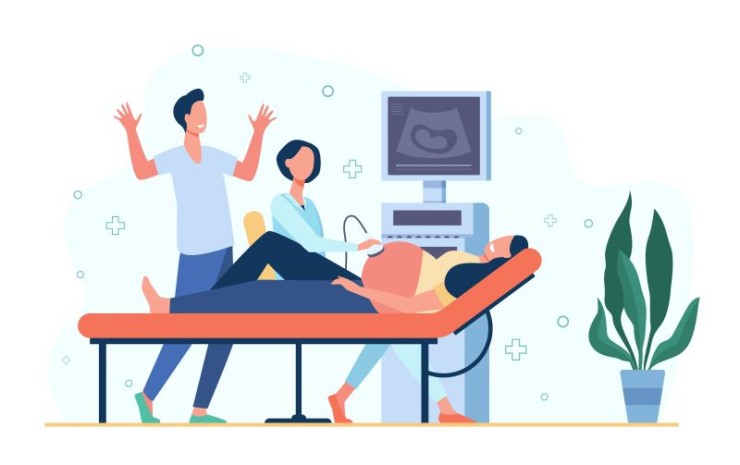 machine to get images of the baby. The process involves applying a gel on the